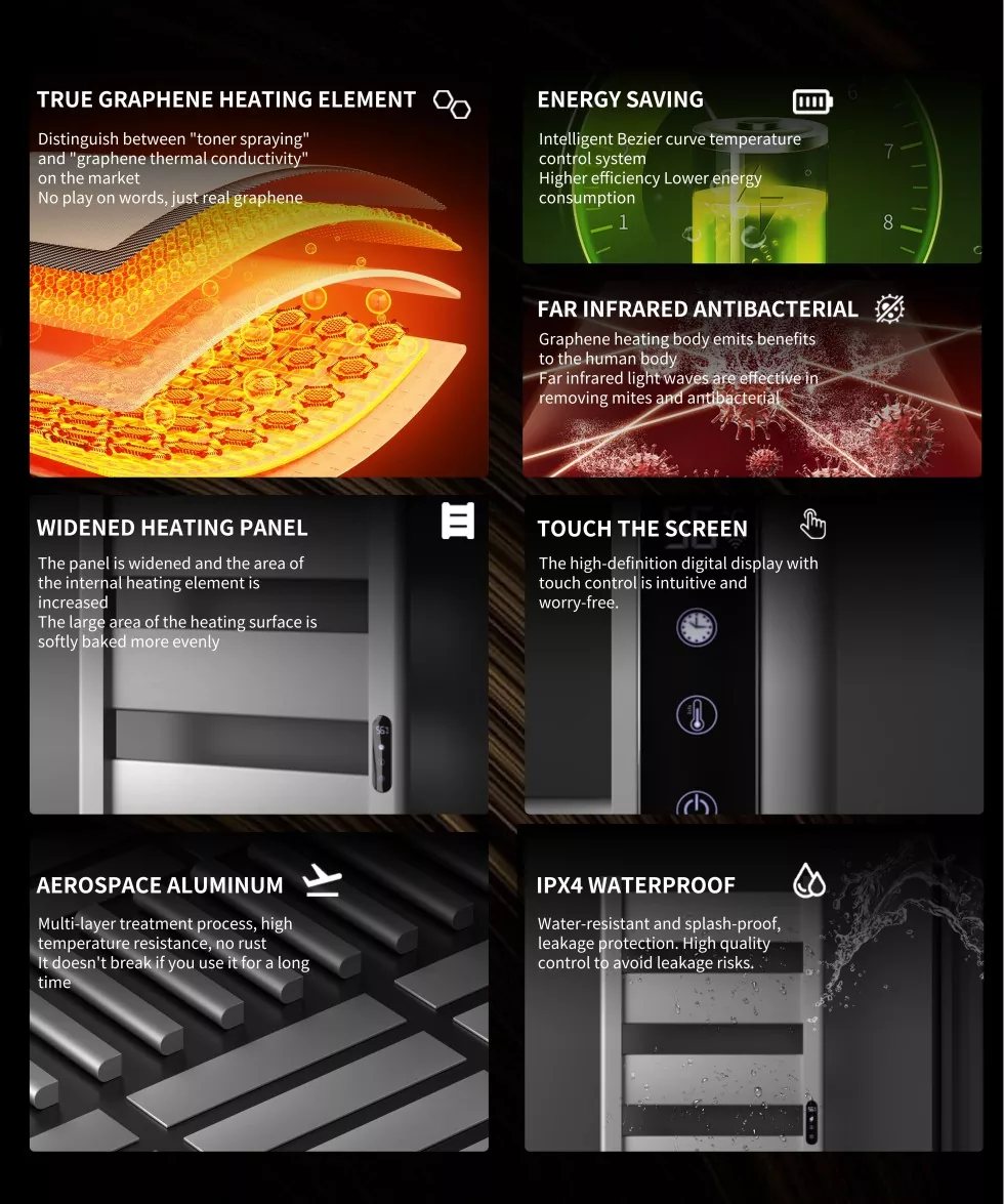 • 112 W grafénový stojan na elektrické uteráky112 W grafénový stojan na elektrické uteráky
