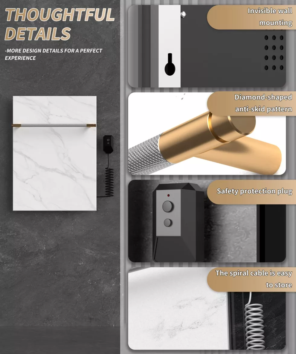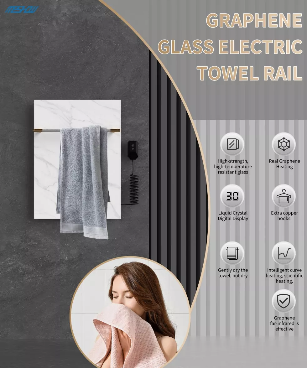 Graphene Smart Glass White Towel Rack vyrobený značkou Meshow získal trhovú chválu za svoj jedinečný dizajn. Tento grafén inteligentný sklenený biely uterák na uterák dômyselne kombinuje vysoko pevné temperované sklo s grafénovým materiálom, čím zabezpečuje trvanlivosť a dosiahnutie rýchleho vykurovania a efektov úspory energie. Meshow sa dobre oboznámi s umením používateľskej skúsenosti, starostlivo vytvára jej vzhľad a funkčnosť a tento produkt v kúpeľni transformuje na jedinečnú krásu.