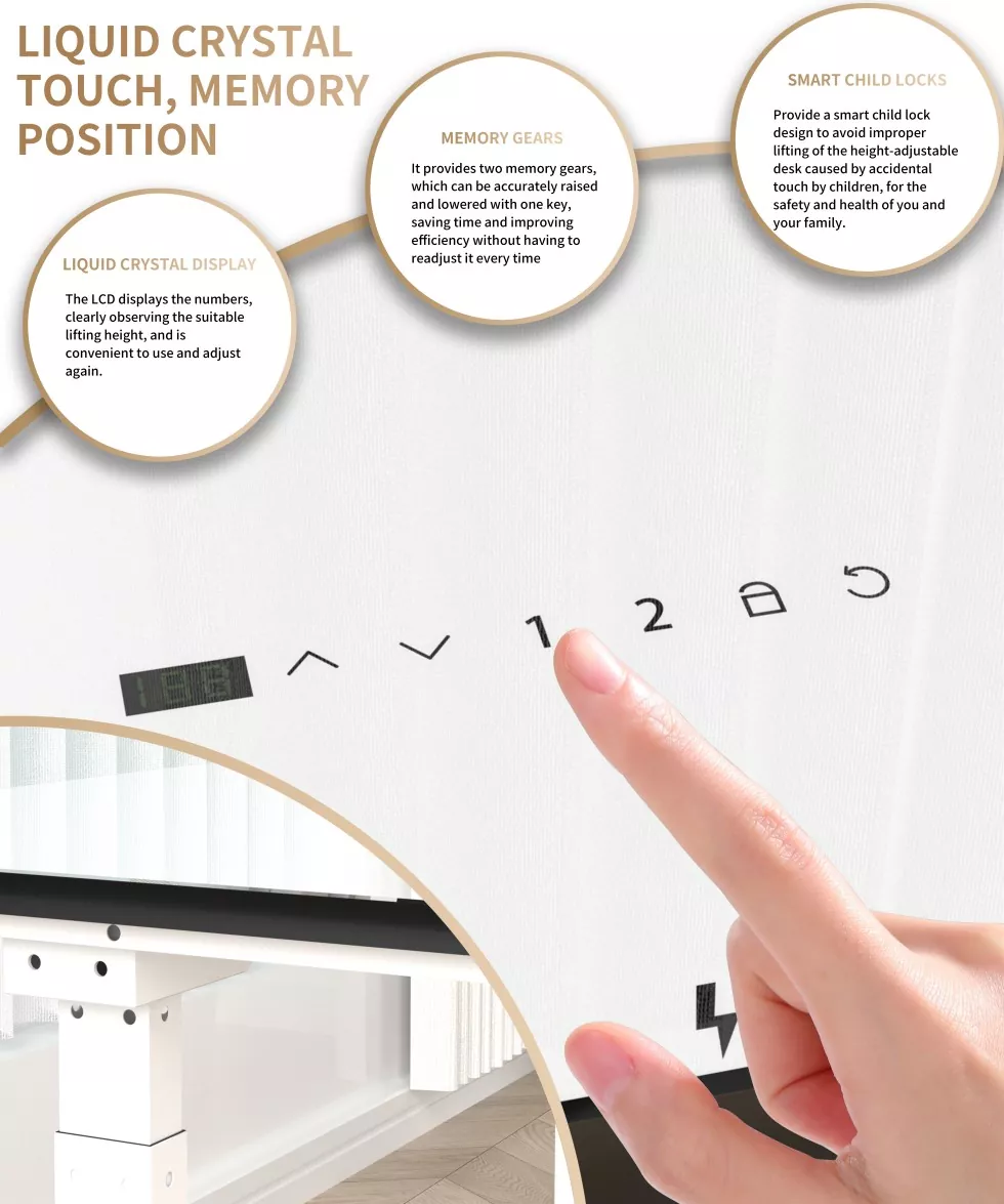 Spoločnosť Meshow vydala vysokokvalitný biely sklenený doska s dvojitým motorovým zdvíhacím stolom, pričom využíva špičkovú technológiu duálnej motora na zabezpečenie hladkého, rýchleho a tichého zdvíhania. Desktop je vyrobený z vysoko kvalitného materiálu bieleho skla, ktorý je hladký a odolný, integruje modernú estetiku, ľahko sa čistí a je vhodný pre rôzne kancelárske prostredie. Pracujúca v postavení alebo sedení je elektrický zdvíhací stôl ergonomicky navrhnutý tak, aby efektívne zmiernil zdravotné problémy spôsobené predĺženou prácou.